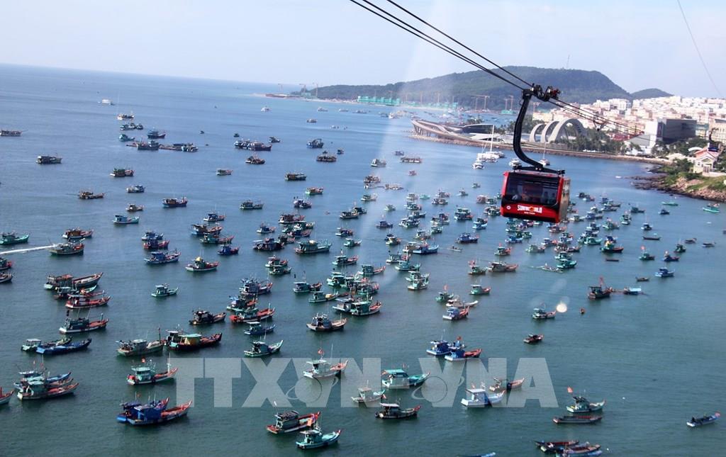 Cáp treo Hòn Thơm vượt biển dài nhất thế giới tại đặc khu Phú Quốc (An Giang). Ảnh: Lê Huy Hải - TTXVN