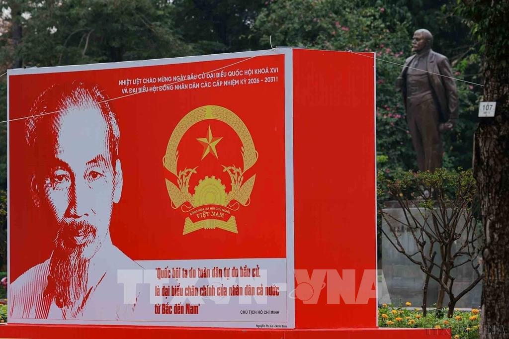 Nhiều tuyến phố tại Thủ đô Hà Nội được trang hoàng pano, áp phích và khẩu hiệu tuyên truyền cuộc bầu cử đại biểu Quốc hội khóa XVI và đại biểu Hội đồng nhân dân các cấp nhiệm kỳ 2026 – 2031, diễn ra ngày 15/3/2026 được phóng viên ảnh ghi lại. Ảnh: Phạm Tuấn Anh – TTXVN