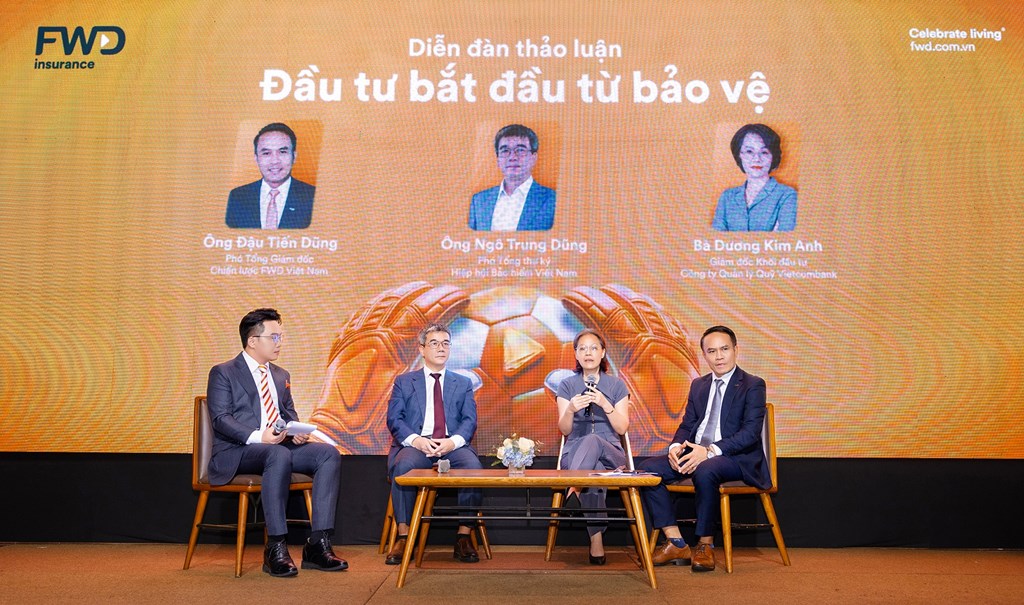 Phiên thảo luận với chủ đề “Đầu tư bắt đầu từ bảo vệ” tại sự kiện ra mắt sản phẩm mới của FWD Việt Nam. Ảnh: Bnews phát