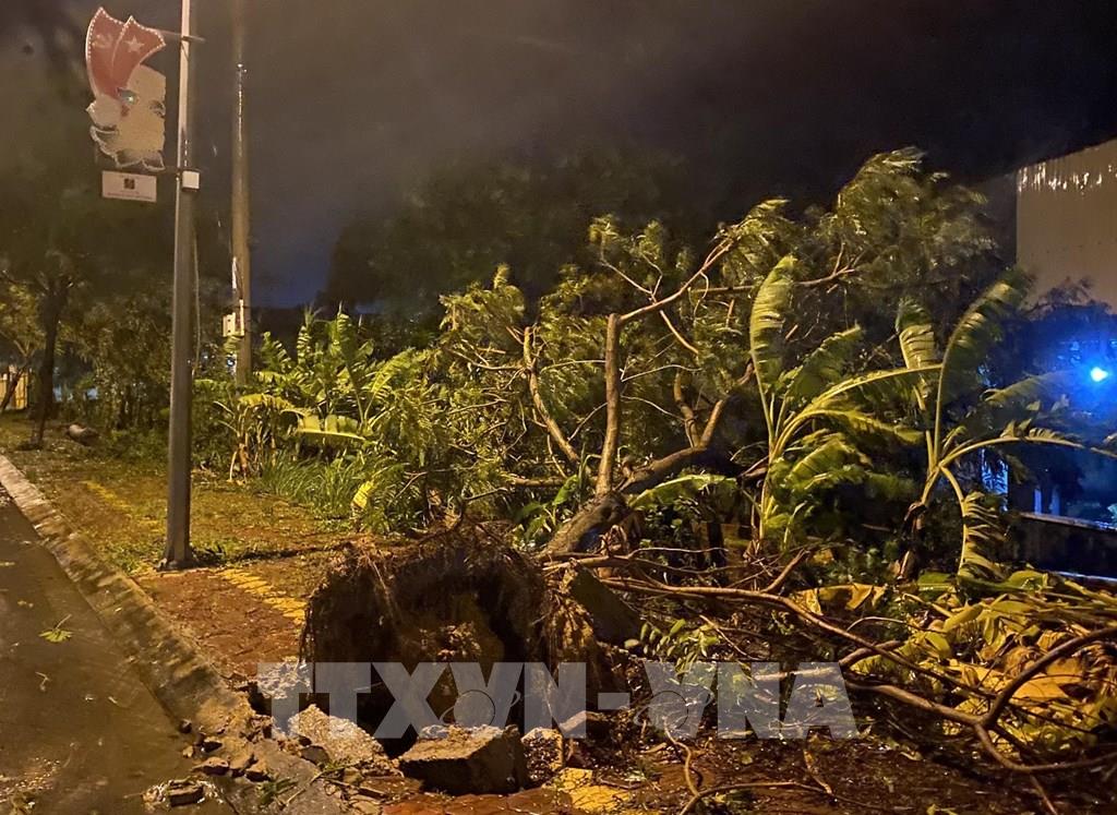 Cây cối ngã đổ do gió quật. Ảnh: Lê Phước Ngọc - TTXVN