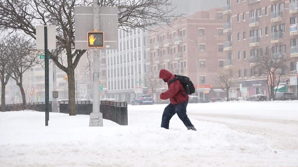 Người dân băng qua đường trong "biển tuyết". Ảnh: Thanh Tuấn - Phóng viên TTXVN tại Mỹ