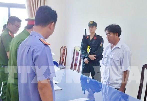 Cơ quan điều tra tống đạt các quyết định đối với bị can Phạm Hồng Phúc. Ảnh: TTXVN phát