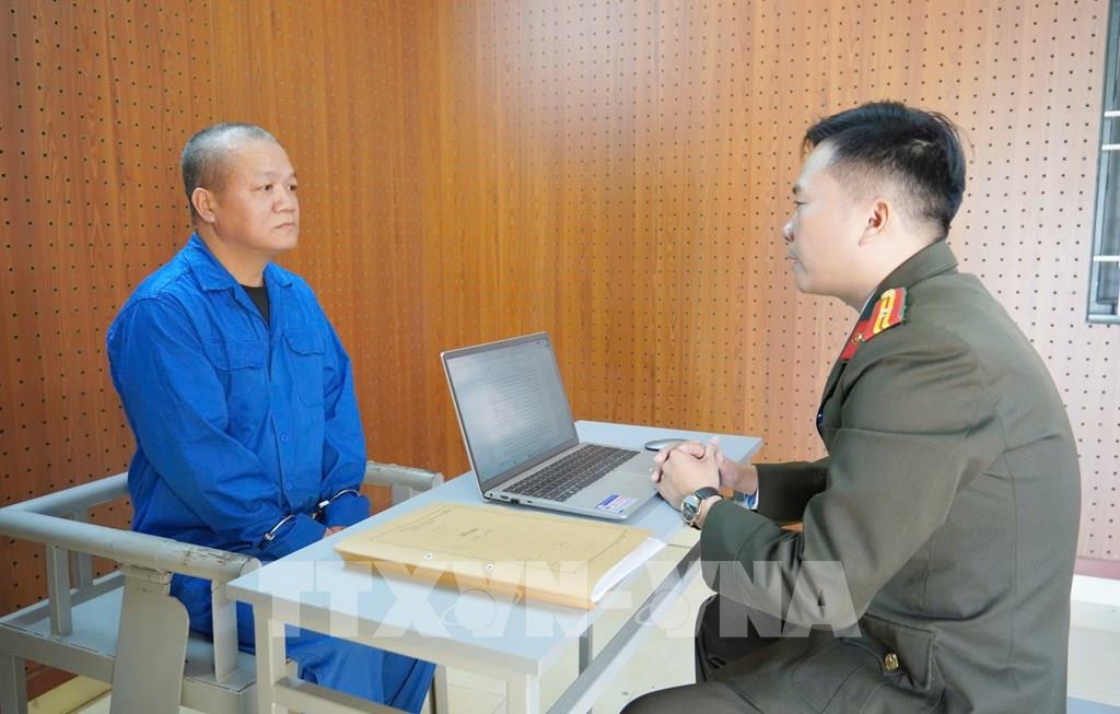 Đối tượng Lao Văn Mạnh tại cơ quan An ninh điều tra công an tỉnh Điện Biên. Ảnh: TTXVN phát