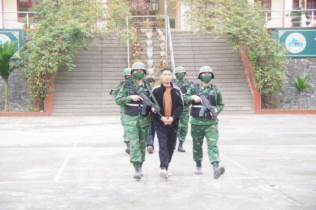 BĐBP áp giải các đối tượng vận chuyển ngoại tệ qua biên giới. Ảnh: TTXVN phát