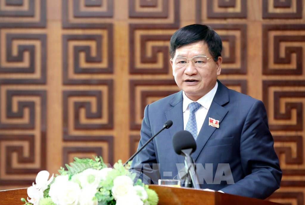 Tân Chủ tịch HĐND tỉnh Điện Biên Lê Thành Đô phát biểu nhận nhiệm vụ. Ảnh: Trung Kiên - TTXVN