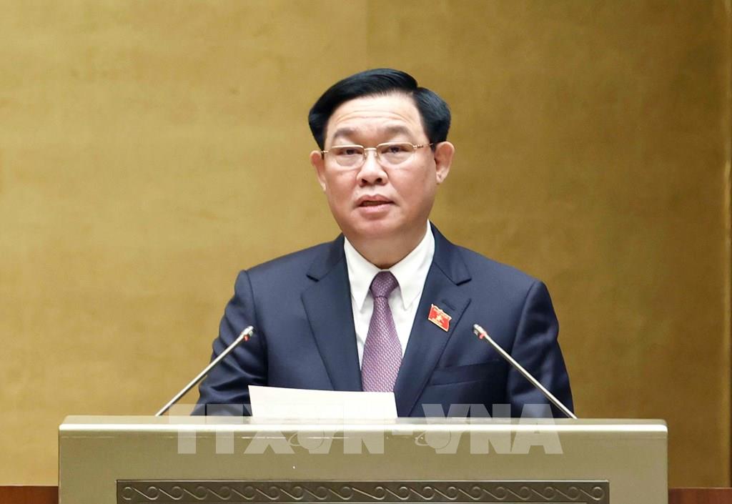 Chủ tịch Quốc hội Vương Đình Huệ phát biểu bế mạc kỳ họp. Ảnh: Doãn Tấn - TTXVN