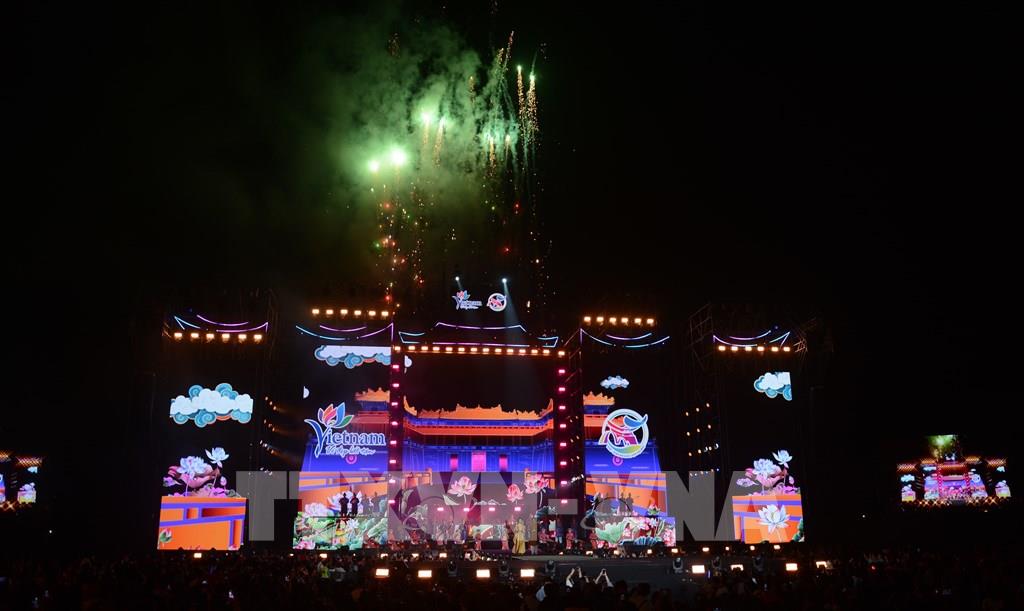Khán giả được thưởng lãm chương trình nghệ thuật mang màu sắc văn hóa Huế tại lễ bế mạc. Ảnh: Văn Dũng-TTXVN