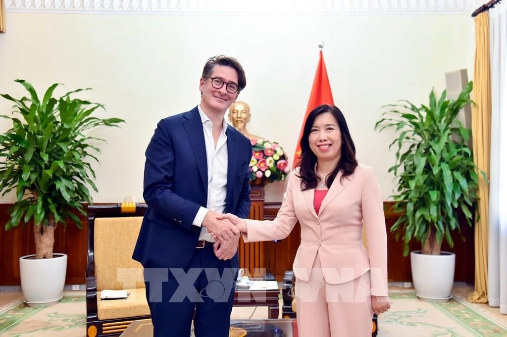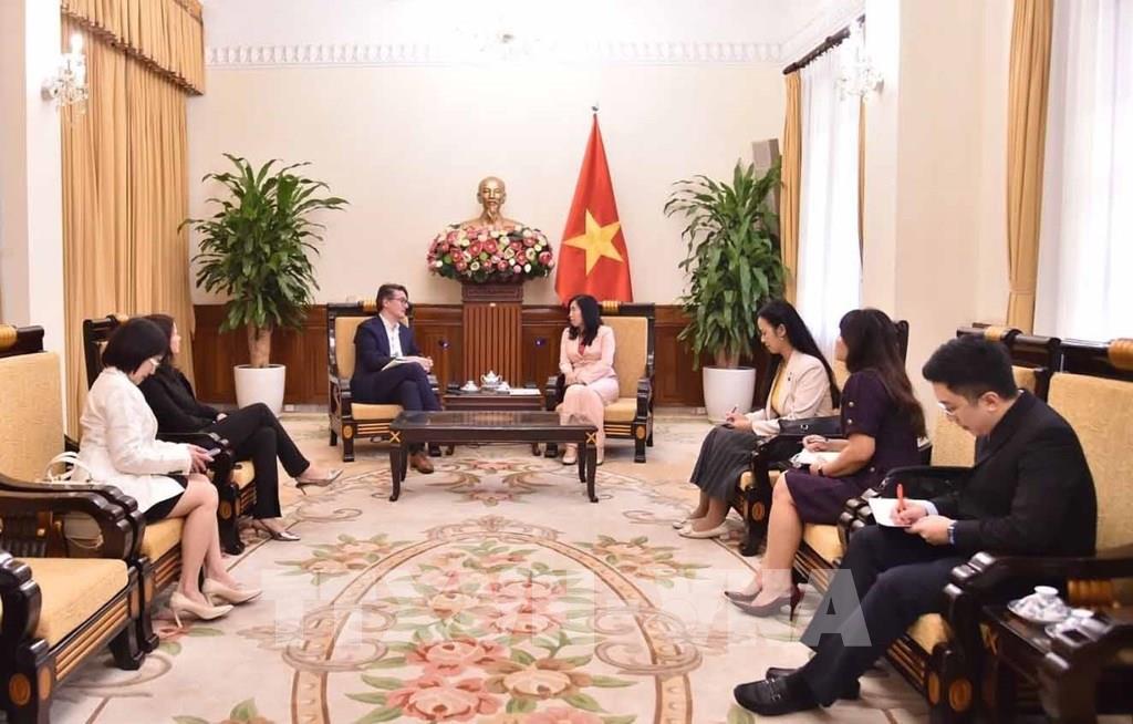 Thứ trưởng Ngoại giao Lê Thị Thu Hằng tiếp ông John Fraher, Tổng Biên tập Điều hành cấp cao của Bloomberg phụ trách khu vực Châu Á – Thái Bình Dương. Ảnh: TTXVN phát