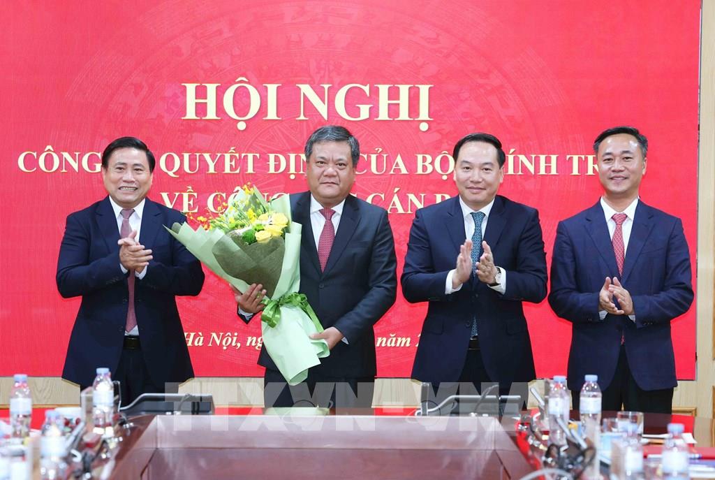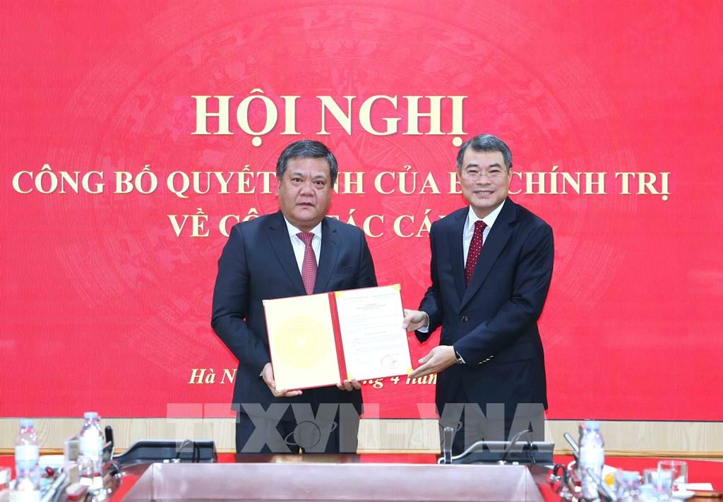 Đồng chí Lê Minh Hưng, Uỷ viên Bộ Chính trị, Bí thư Trung ương Đảng, Trưởng Ban Tổ chức Trung ương trao Quyết định của Bộ Chính trị cho đồng chí Trần Phong. Ảnh: Phương Hoa - TTXVN
