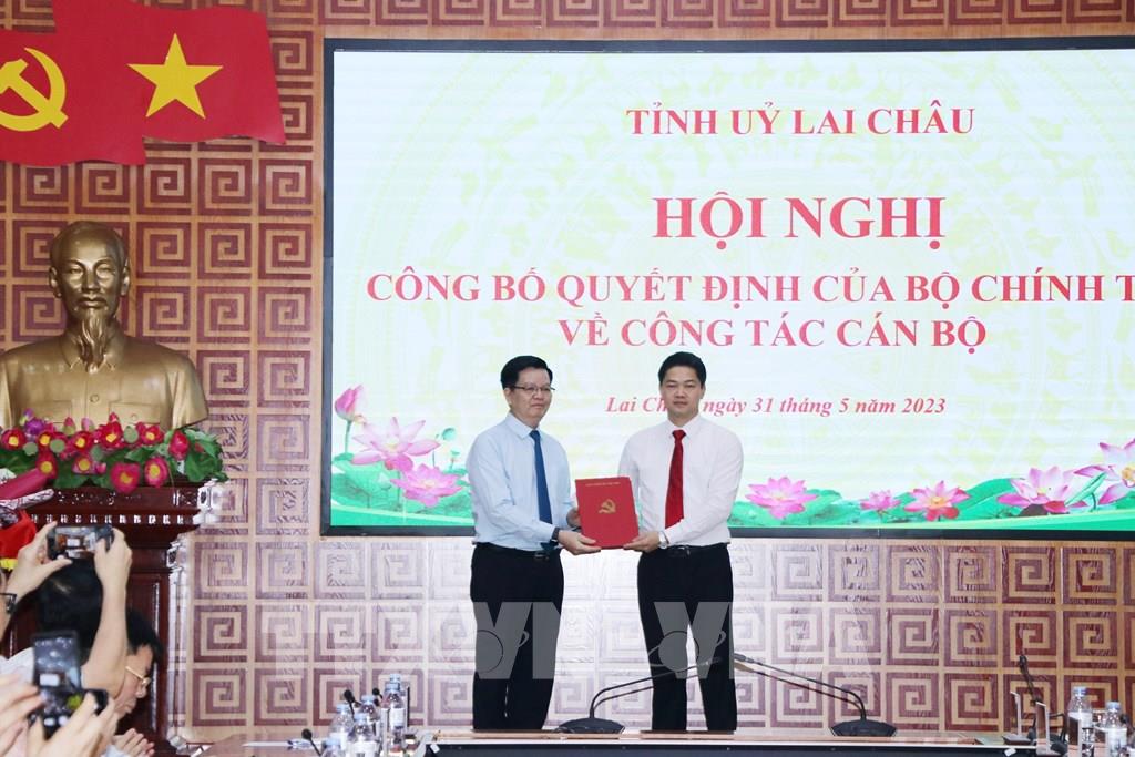Ủy viên Trung ương Đảng, Phó Trưởng ban Thường trực Ban Tổ chức Trung ương Mai Văn Chính trao Quyết định cho tân Phó Bí thư Tỉnh ủy Lai Châu Vũ Mạnh Hà. Ảnh: Việt Hoàng - TTXVN