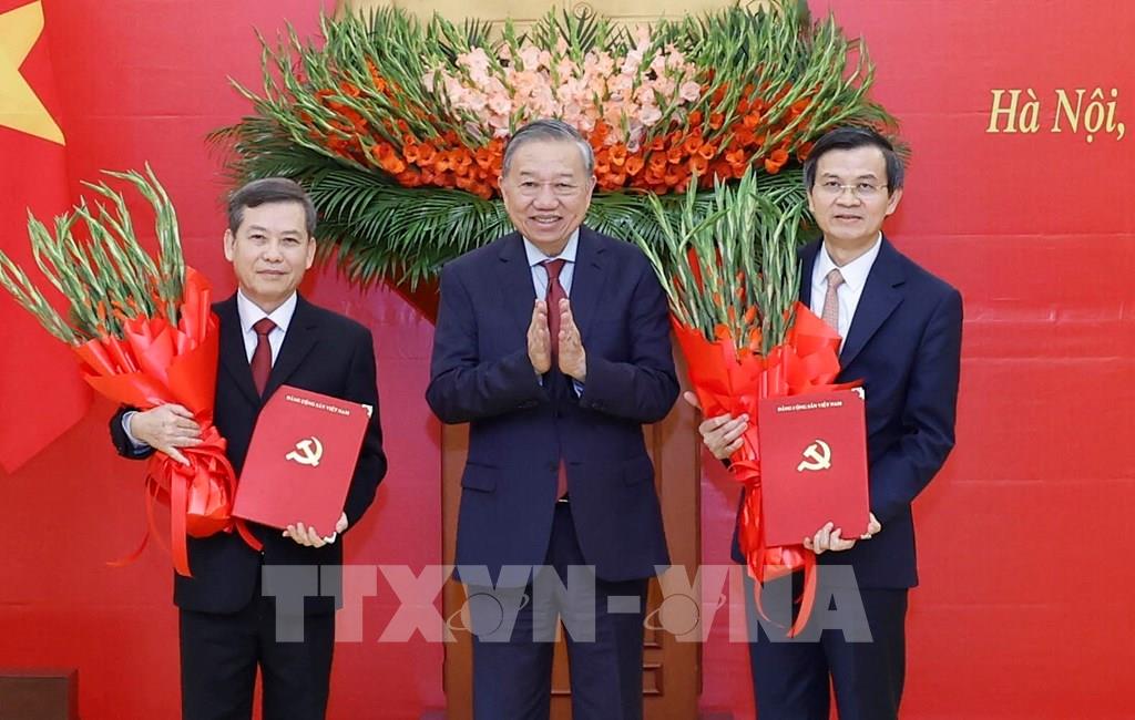 Theo đó, Bộ Chính trị quyết định phân công, bổ nhiệm, chỉ định đồng chí Lê Minh Trí, Ủy viên Bộ Chính trị, Bí thư Trung ương Đảng, Phó Trưởng ban Thường trực Ban Nội chính Trung ương giữ chức: Trưởng ban Nội chính Trung ương; Phó Trưởng ban Thường trực Ban Chỉ đạo Trung ương về phòng, chống tham nhũng, lãng phí, tiêu cực; Phó Trưởng ban Thường trực Ban Chỉ đạo Cải cách tư pháp Trung ương; Ủy viên Tiểu ban Bảo vệ Chính trị nội bộ Trung ương; Ủy viên Ban Chỉ đạo Tổng kết một số vấn đề lý luận và thực tiễn về công tác đổi mới theo định hướng xã hội chủ nghĩa trong 40 năm qua ở Việt Nam. Bộ Chính trị quyết định phân công, bổ nhiệm, chỉ định đồng chí Đoàn Minh Huấn, Ủy viên Bộ Chính trị, Phó Giám đốc Thường trực Học viện Chính trị quốc gia Hồ Chí Minh giữ chức: Giám đốc Học viện Chính trị quốc gia Hồ Chí Minh; Phó Trưởng Ban Chỉ đạo Trung ương về bảo vệ nền tảng tư tưởng của Đảng, đấu tranh phản bác các quan điểm sai trái, thù địch trong tình hình mới; Phó Trưởng Ban Chỉ đạo Tổng kết một số vấn đề lý luận và thực tiễn về công tác đổi mới theo định hướng xã hội chủ nghĩa trong 40 năm qua ở Việt Nam. Thay mặt Bộ Chính trị, Tổng Bí thư Tô Lâm trao quyết định cho đồng chí Lê Minh Trí và đồng chí Đoàn Minh Huấn. Tại Lễ công bố, Tổng Bí thư Tô Lâm chúc mừng và ghi nhận những đóng góp tâm huyết, trí tuệ, trách nhiệm, bản lĩnh của các đồng chí Phan Đình Trạc, đồng chí Nguyễn Xuân Thắng trong nhiệm kỳ XIII vừa qua; mong muốn các đồng chí tiếp tục cống hiến, đóng góp, quan tâm, trao đổi kinh nghiệm với các thế hệ kế cận, chung sức vì sự nghiệp cách mạng của Đảng, của nhân dân, góp phần cùng toàn Đảng, toàn dân thực hiện thắng lợi Nghị quyết Đại hội lần thứ XIV của Đảng, đưa nước ta vững bước đi lên con đường chủ nghĩa xã hội, thực hiện các mục tiêu hòa bình, độc lập, dân chủ, giàu mạnh, phồn vinh, văn minh, hạnh phúc.Tổng Bí thư nhấn mạnh, đồng chí Lê Minh Trí và đồng chí Đoàn Minh Huấn đều là những cán bộ lãnh đạo nhiều kinh nghiệm, thời gian công tác và trưởng thành từ những cơ quan, với những chức năng, nhiệm vụ khác nhau; chúc mừng hai đồng chí được Bộ Chính trị phân công, bổ nhiệm, chỉ định giữ cương vị trọng trách mới, thể hiện sự tin tưởng, đánh giá cao đối với năng lực, đóng góp của các đồng chí trong thời gian vừa qua.