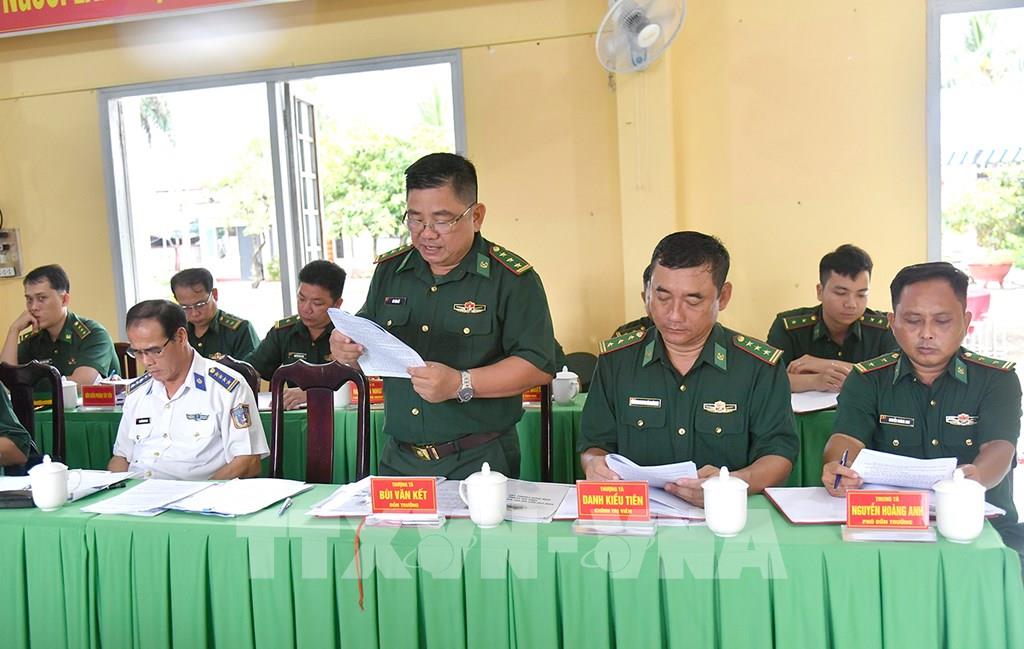 Thượng tá Bùi Văn Kết, Đồn trưởng Đồn Biên phòng Tây Yên, Ban Chỉ huy Bộ đội Biên phòng tỉnh An Giang phát biểu. Ảnh: Văn Sĩ - TTXVN