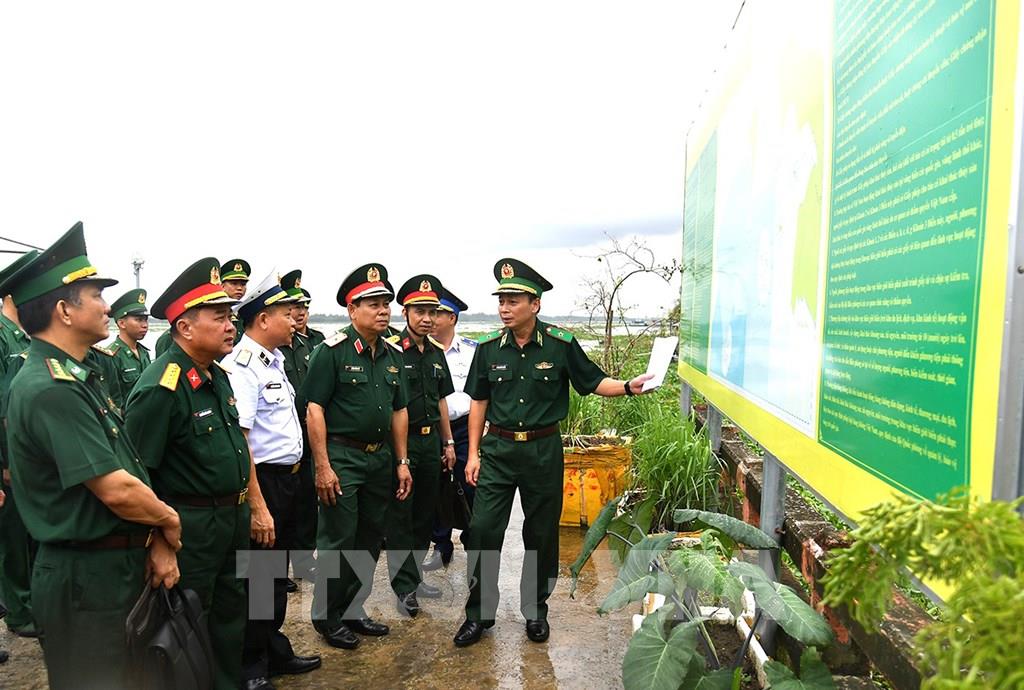 Đoàn công tác của Bộ Quốc phòng kiểm tra thực tế tại Đồn Biên phòng Tây Yên, Ban Chỉ huy Bộ đội Biên phòng tỉnh An Giang. Ảnh: Văn Sĩ - TTXVN