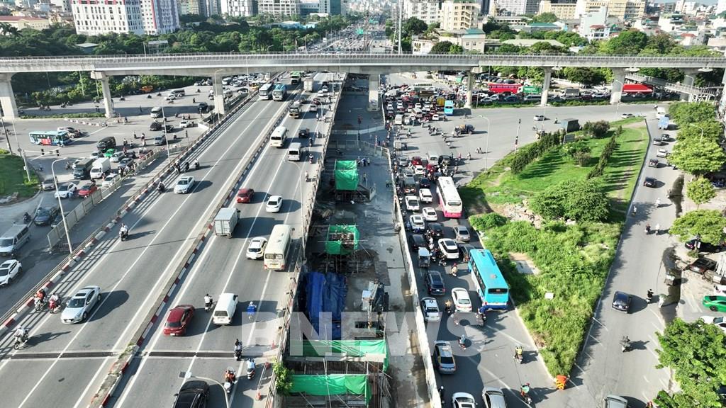 Đồng thời đơn vị cũng tiến hành tổ chức phân luồng từ xa để giảm áp lực giao thông cho nút giao. Tuy nhiên, do phương án tổ chức giao thông mới cùng với việc rào chắn lòng đường để phục vụ thi công khiến nút giao đông đúc hơn bình thường.