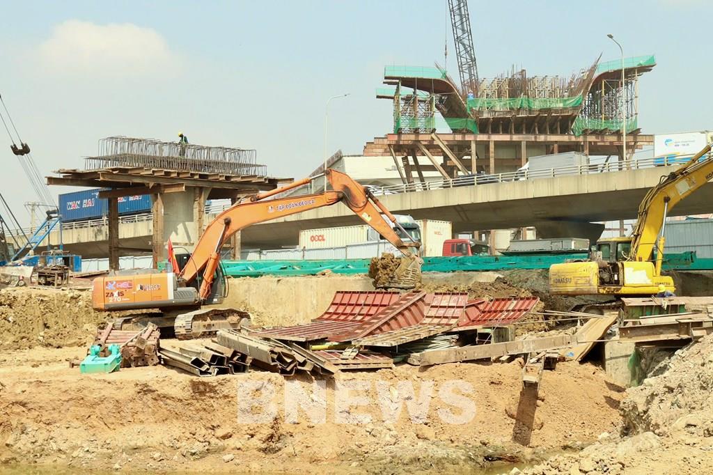 Nhà thầu tập trung tối đa máy móc, nhân lực để thi công tại nút giao Tân Vạn thuộc đường Vành đai 3 TP. Hồ Chí Minh. Ảnh: Bnews/vnanet.vn phát