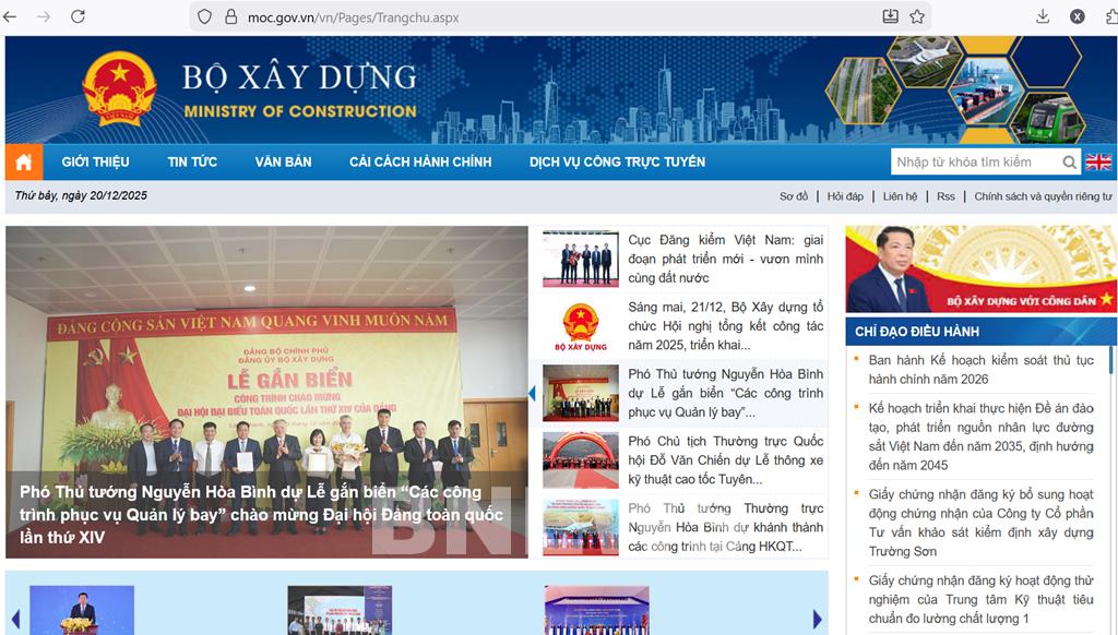 Giao diện của Cổng thông tin Bộ Xây dựng. Ảnh: Chụp màn hình