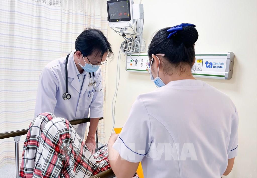 Bác sĩ Bệnh viện Tâm Anh khám, điều trị cho nạn nhân ngộ độc thực phẩm sau khi ăn bánh mì. Ảnh: TTXVN phát