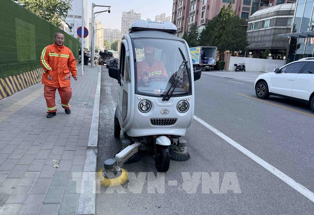 Các nhân viên vệ sinh môi trường cũng hoạt động liên tục để đảm bảo vệ sinh môi trường luôn sạch đẹp, không có bụi bẩn. Ảnh: Công Tuyên - PV TTXVN tại Trung Quốc