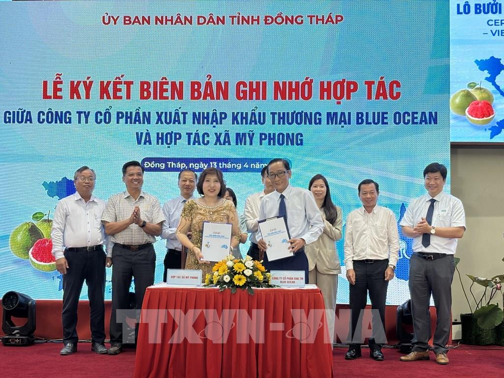 Cũng tại buổi lễ, Công ty cổ phần Xuất nhập khẩu thương mại Blue Ocean ký kết hợp tác với Hợp tác xã dịch vụ nông nghiệp Mỹ Phong xây dựng vùng nguyên liệu bưởi chất lượng để cung ứng cho thị trường Australia.Tin liên quan