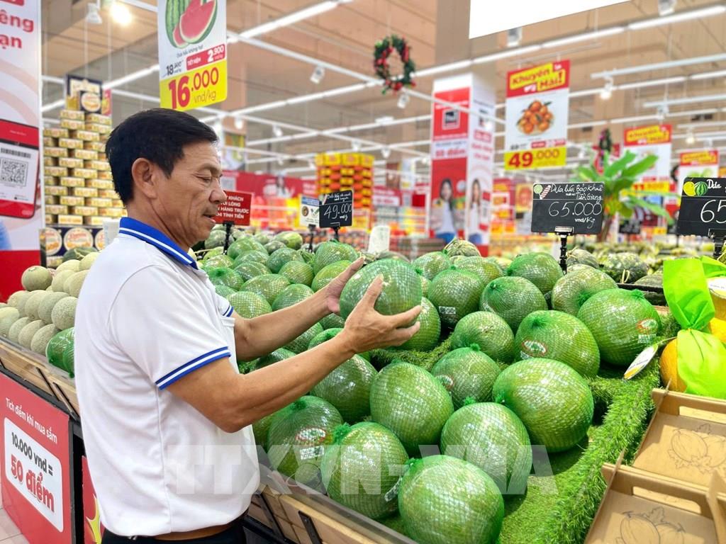 Người tiêu dùng chọn lựa mặt hàng bưởi trong siêu thị. Ảnh: Hoàng Nhị - TTXVN