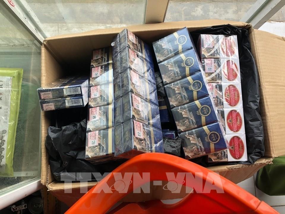 Số thuốc lá không rõ nguồn gốc bị thu giữ. Ảnh: TTXVN phát