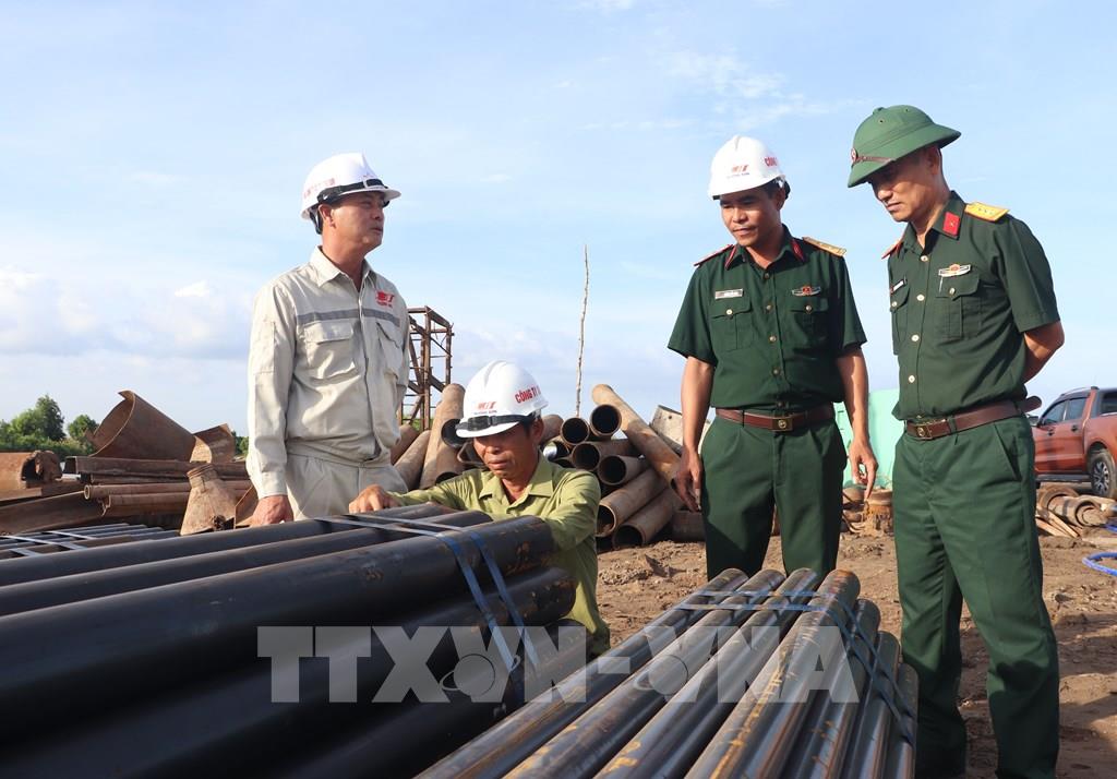 Đơn vị thi công (Ban Trường Sơn Nam) kiểm tra vật liệu tại công trường dự án. Ảnh: Tuấn Phi - TTXVN