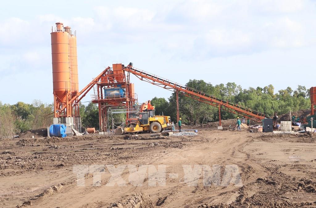 Máy móc trang thiết bị được huy động ra công trường cao tốc Cà Mau - Đất Mũi. Ảnh: Tuấn Phi - TTXVN