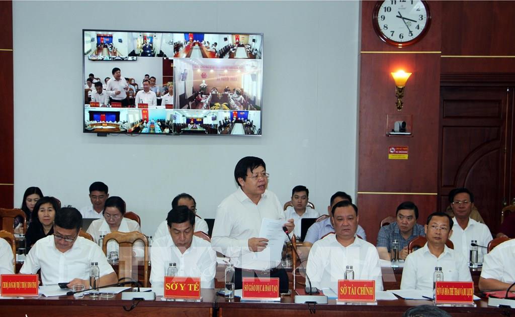 Lãnh đạo các Sở ngành phát biểu thảo luận tại hội nghị. Ảnh Trung Hiếu/TTXVN