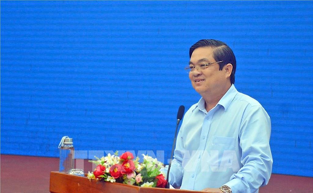 Phó Chủ tịch UBND tỉnh Cà Mau Huỳnh Chí Nguyện phát biểu tại hội nghị. Ảnh: Huỳnh Anh - TTXVN