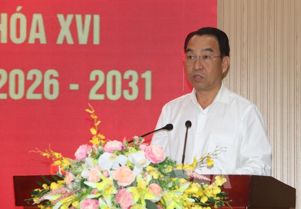 Bí thư Tỉnh ủy Cà Mau Nguyễn Hồ Hải phát biểu chỉ đạo tại hội nghị. Ảnh: Tuấn Phi - TTXVN