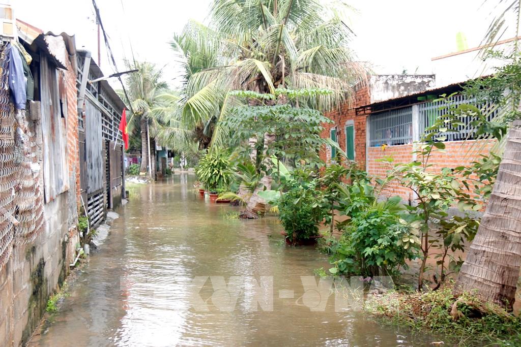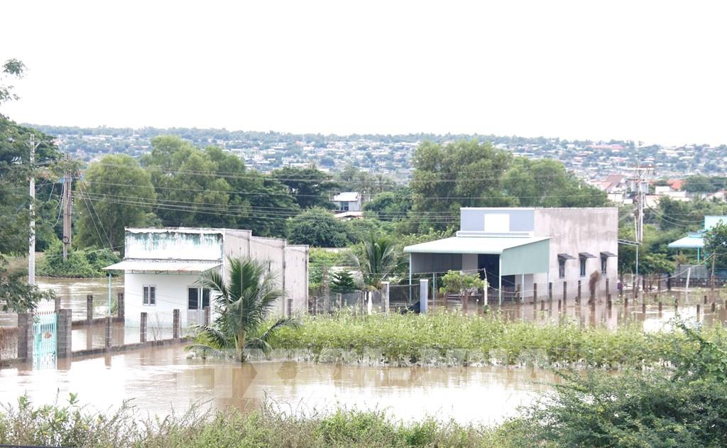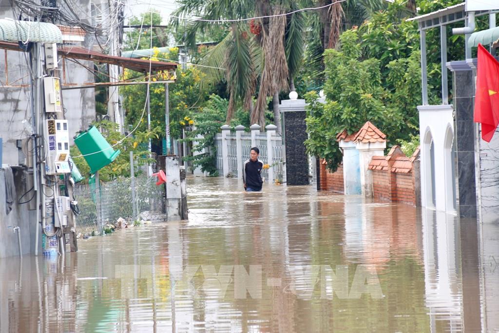 Nhiều khu dân cư tại phường Bình Thuận vẫn ngập sâu trong nước. Ảnh: Nguyễn Thanh - TTXVN