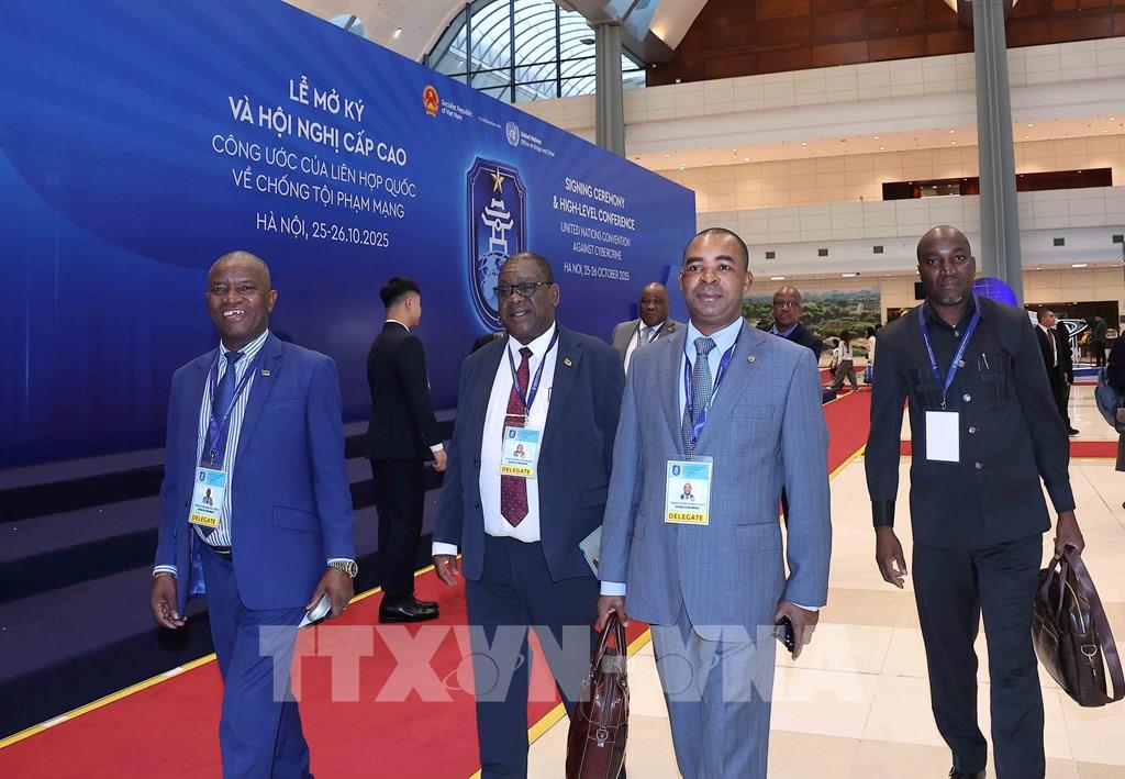 Các đại biểu quốc tế đến Trung tâm Hội nghị Quốc gia tham dự Lễ mở ký Công ước Hà Nội, sáng 25/10. Ảnh: An Đăng-TTXVN