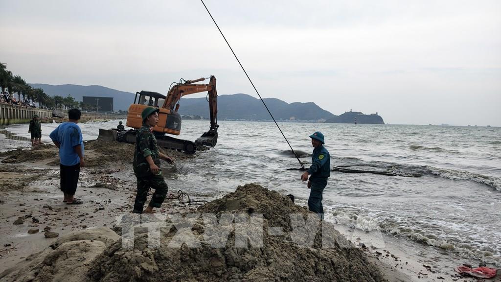 Cận cảnh trục vớt vật thể giống xác xe tăng ở biển Quy Nhơn
