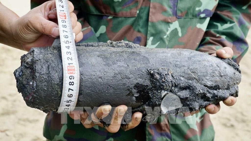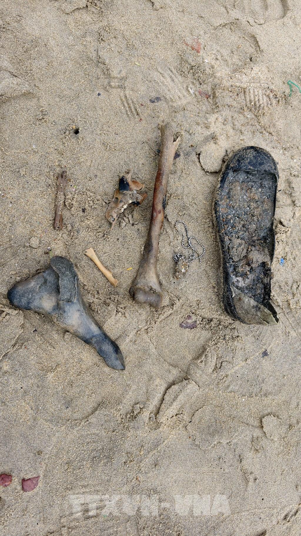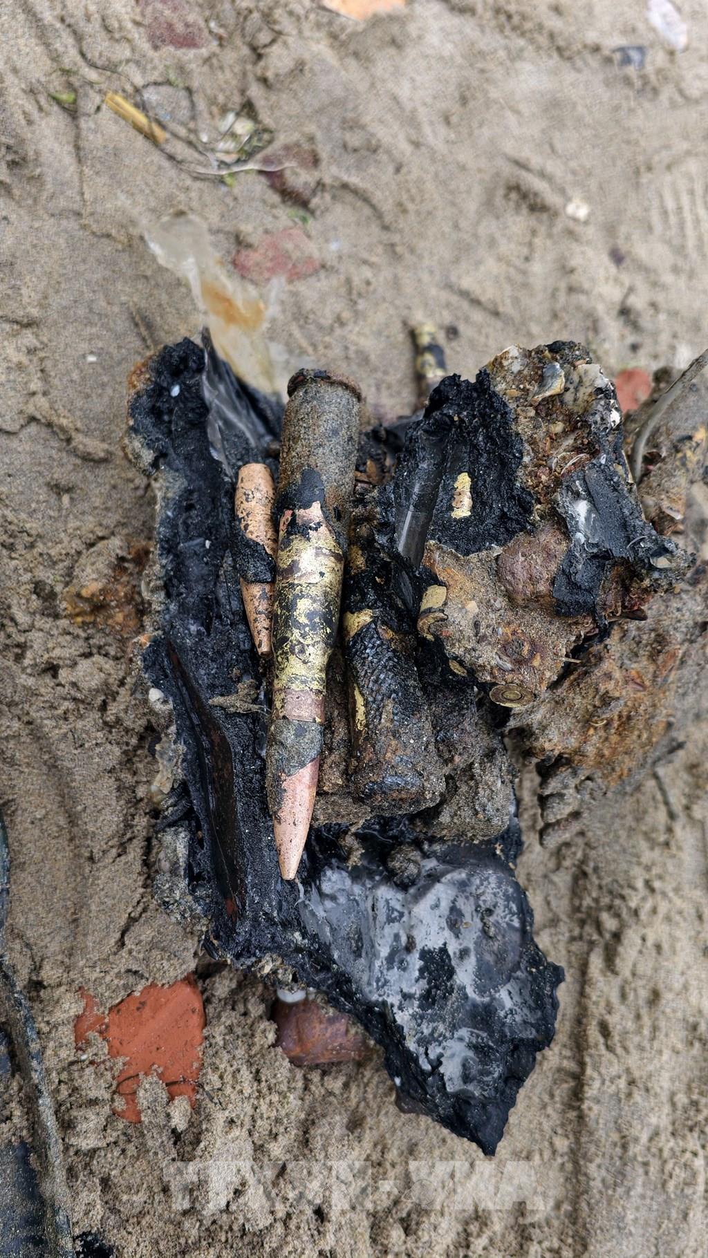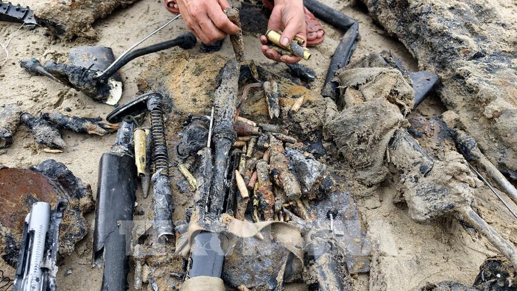 Chỉ sau hơn 2 tiếng, đơn vị khai quật đã phát hiện nhiều hiện vật như: xuơng (nghi xương người), giày, dây chuyền, đầu đạn pháo 120mm, băng đạn R15 12,7mm, 14,5 mm, cùng nhiều đồ dùng khác.