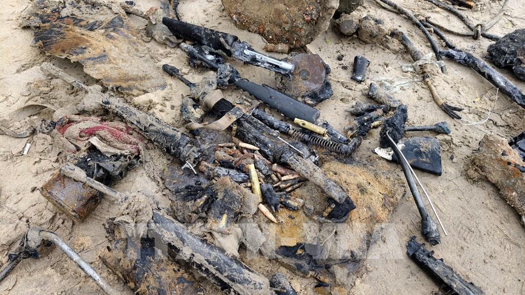 Nhiều vật dụng được phát hiện trong quá trình trục vớt. Ảnh: Sỹ Thắng-TTXVN