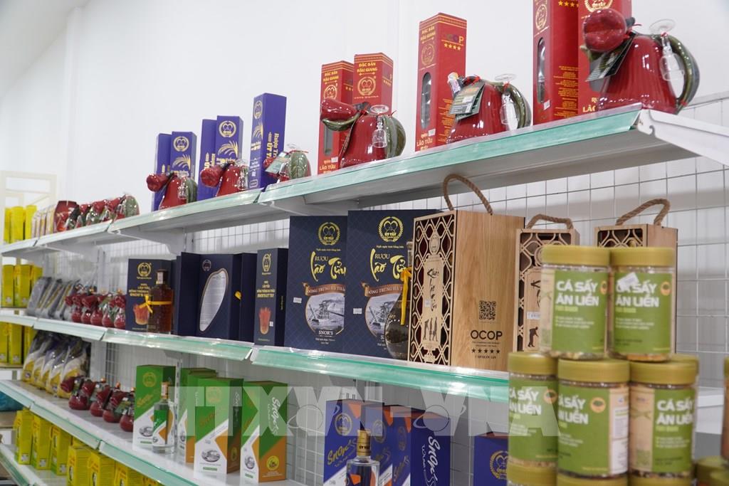 Cửa hàng OCOP 3 miền quy tụ hơn 30 chủ thể OCOP với trên 70 dòng sản phẩm đạt chuẩn 4 - 5 sao. Ảnh: Thu Hiền - TTXVN