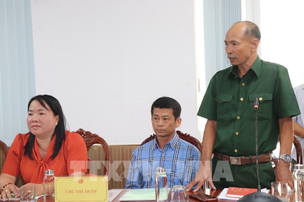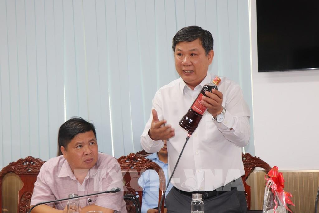 Đại diện Sở Khoa học và Công nghệ thành phố Cần Thơ đóng góp ý kiến về nhãn hiệu sản phẩm nước mắm Tư Hon. Ảnh: Thu Hiền – TTXVN