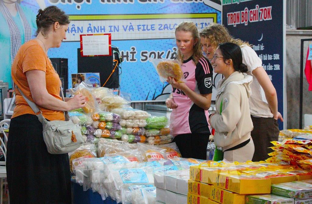 Khách nước ngoài tham quan và mua sắm tại chợ nổi Cái Răng. Ảnh: Nguyễn Hằng - TTXVN