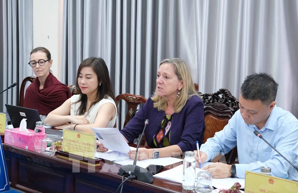 Bà Mariam J. Sherman (thứ 2, phải sang), Giám đốc Ngân hàng Thế giới khu vực Đông Á và Thái Bình Dương, phát biểu tại buổi làm việc. Ảnh: Thanh Liêm - TTXVN