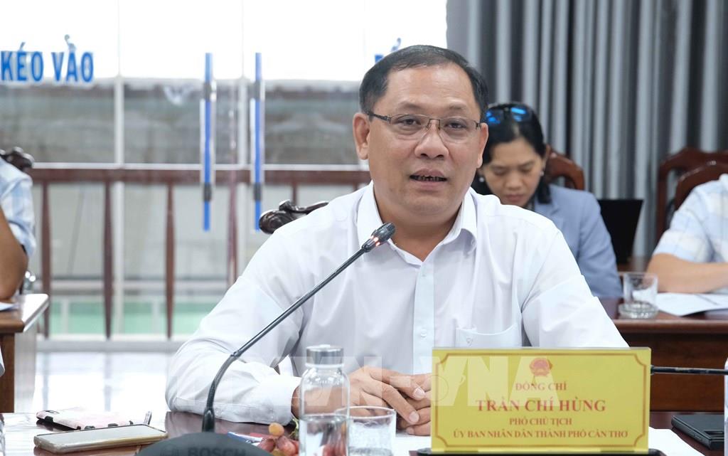Phó Chủ tịch UBND thành phố Cần Thơ Trần Chí Hùng phát biểu tại buổi làm việc. Ảnh: Thanh Liêm - TTXVN