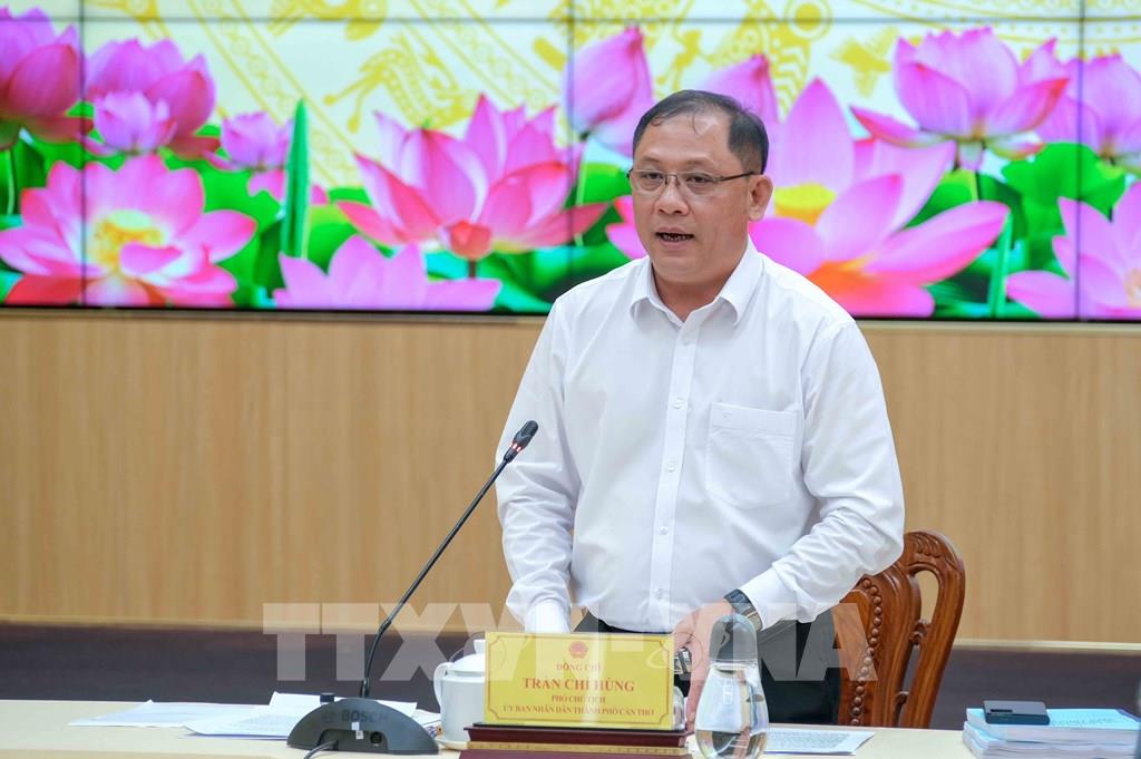 Phó Chủ tịch UBND thành phố Cần Thơ Trần Chí Hùng, Trưởng Ban Chỉ đạo Thi hành án dân sự thành phố phát biểu tại cuộc họp. Ảnh: Thanh Liêm - TTXVN