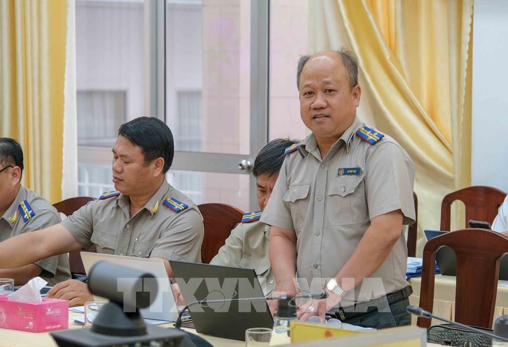 Đại diện Thi hành án dân sự thành phố Cần Thơ báo cáo kết quả thi hành án quý 1/2026 tại cuộc họp. Ảnh: Thanh Liêm - TTXVN