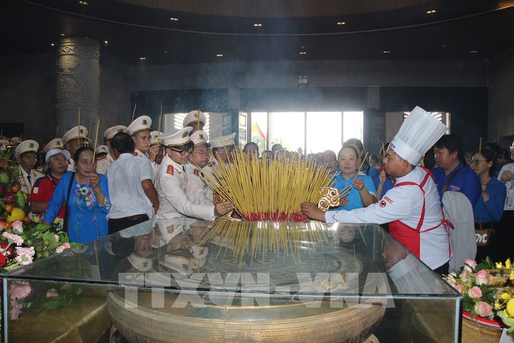 Các đoàn và nhân dân thành phố dâng hương tưởng nhớ các Vua Hùng. Ảnh: Nguyễn Hằng - TTXVN