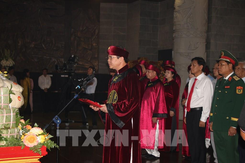 Ông Trương Cảnh Tuyên, Chủ tịch UBND thành phố - Chủ lễ Giỗ Tổ Hùng Vương đọc chúc văn tưởng nhớ và báo công đến các Vua Hùng. Ảnh Nguyễn Hằng - TTXVN