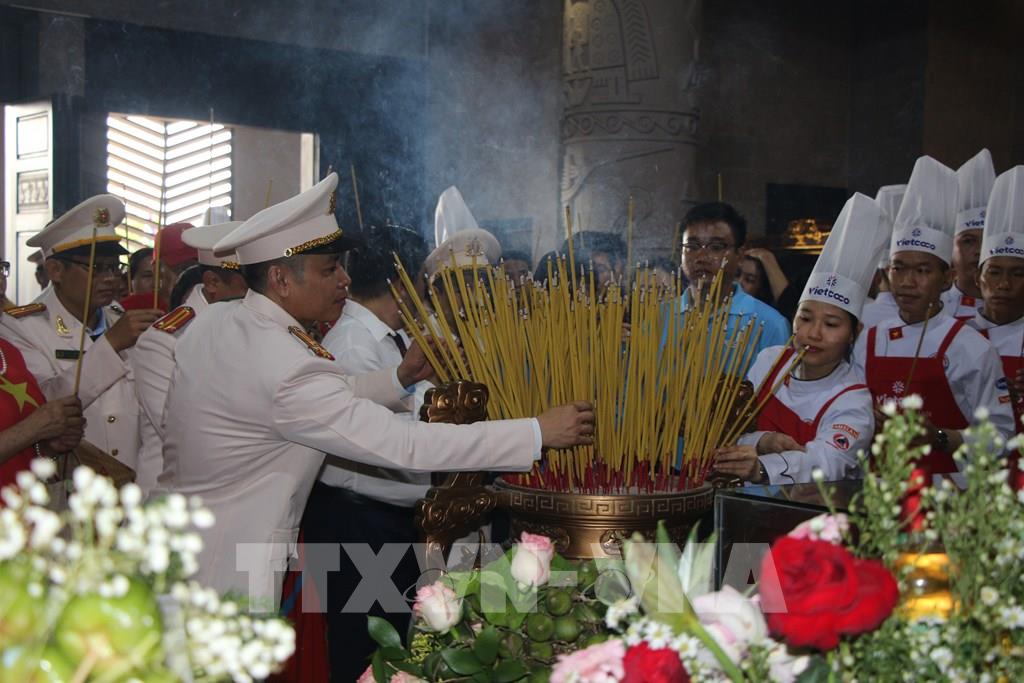 Đại biểu và nhân dân thành phố dâng lễ cúng các Vua Hùng. Ảnh: Nguyễn Hằng - TTXVN