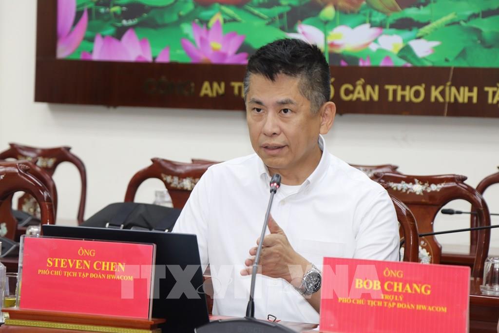 Phó Bí thư Thành ủy Cần Thơ Nguyễn Tuấn Anh mong muốn hợp tác cùng Tập đoàn Hwacom tìm giải pháp có thể ứng dụng cho thực tế giao thông trên địa bàn thành phố. Ảnh: Thu Hiền - TTXVN