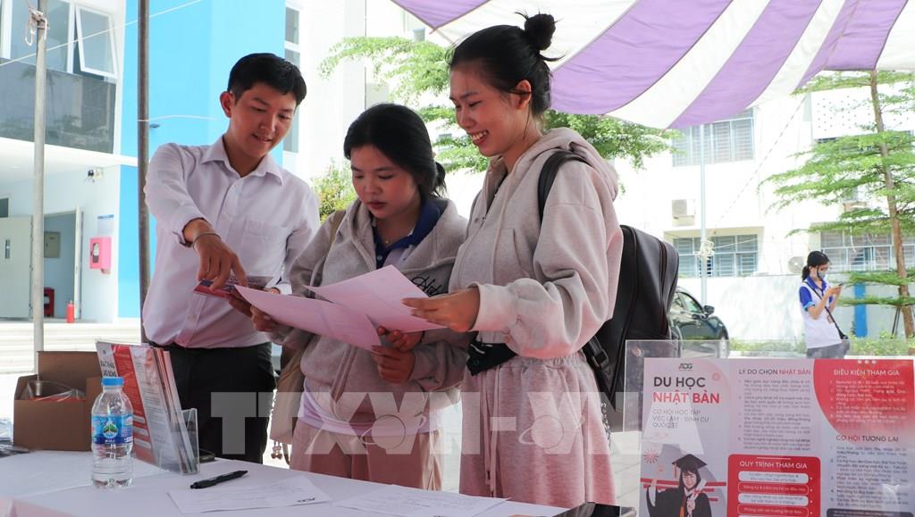 Học sinh, sinh viên tìm hiểu thông tin du học tại ngày hội. Ảnh: Hồng Thái - TTXVN
