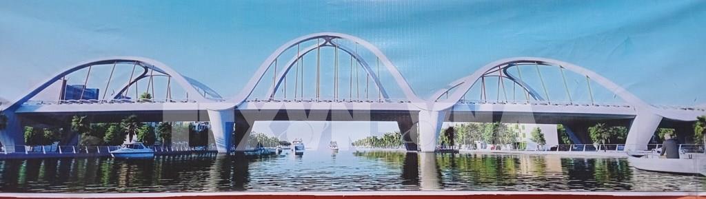 Mô hình cầu Nguyễn Chí Thanh bắc qua kênh xáng Xà No nối phường Vị Thanh và phường Vị Tân, thành phố Cần Thơ. Ảnh: Duy Khương - TTXVN
