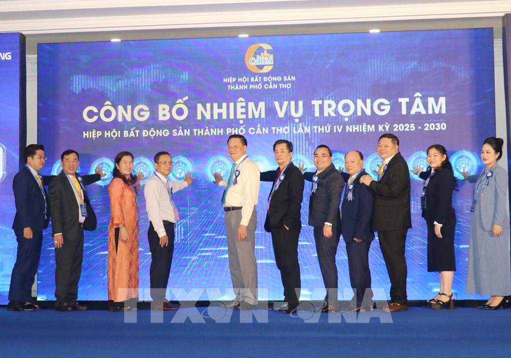 Ban Chấp hành Hiệp hội Bất động sản thành phố Cần Thơ nhiệm kỳ 2025 – 2030 ra mắt đại hội. Ảnh: Ngọc Thiện- TTXVN