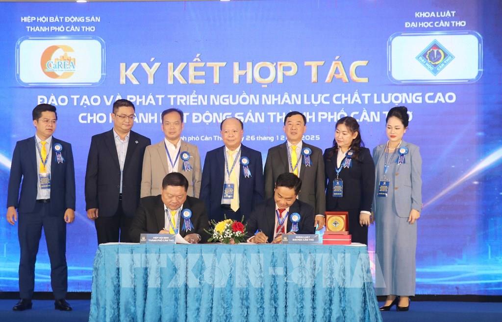 Lễ ký kết hợp tác giữa Hiệp hội BĐS TP. Cần Thơ và Khoa Luật, Đại học Cần Thơ. Ảnh: Ngọc Thiện- TTXVN